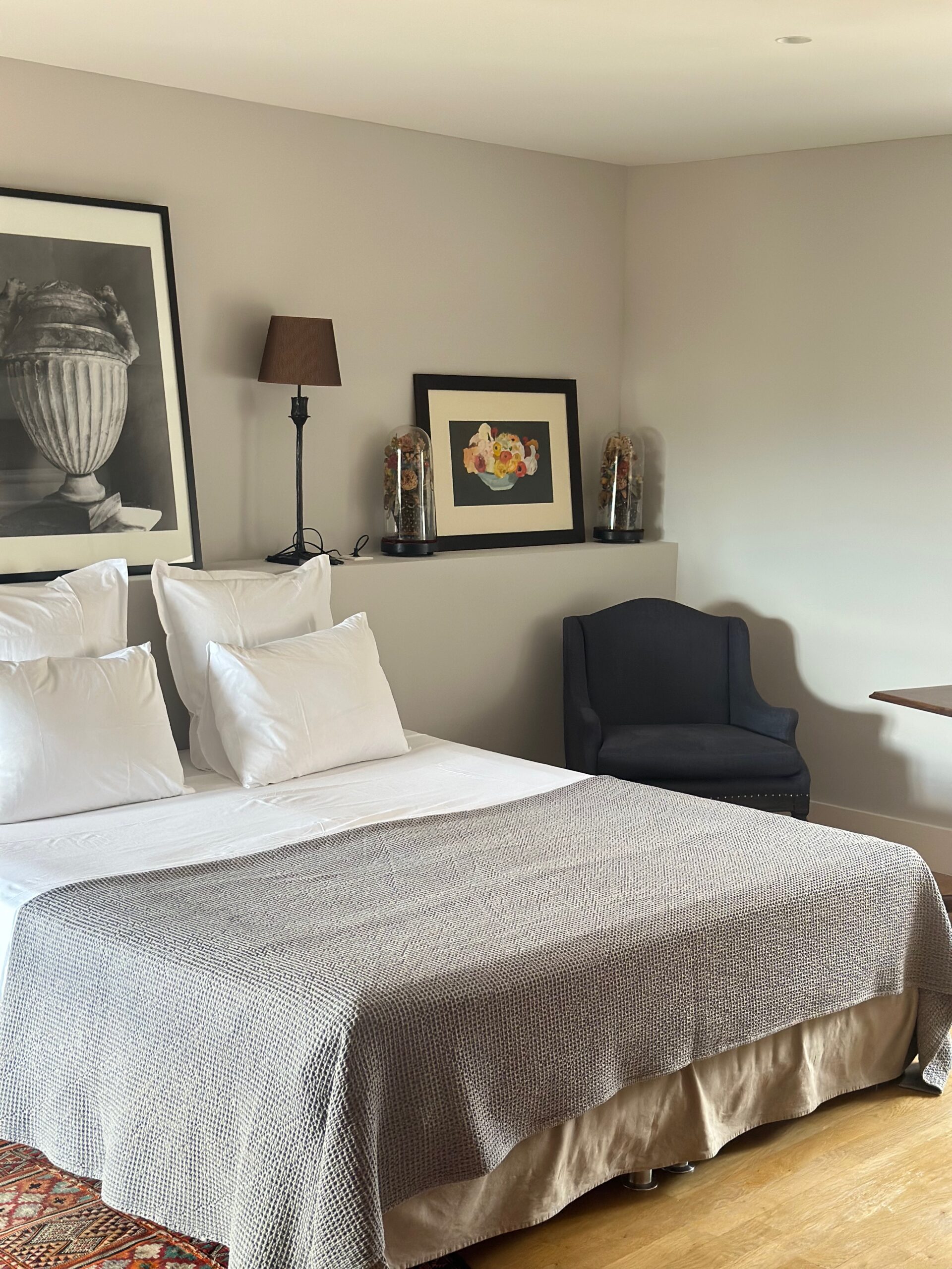 Bathed in light and serenity, this newly restored room invites you to dream beneath the stars. Nestled beneath the rooftops, it rises to the height of the bell tower, where small windows frame views of the plain to the east and the Priory to the west.